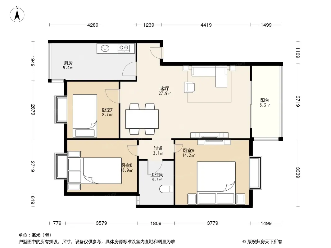 户型齐全,主打明卫,双阳台三居