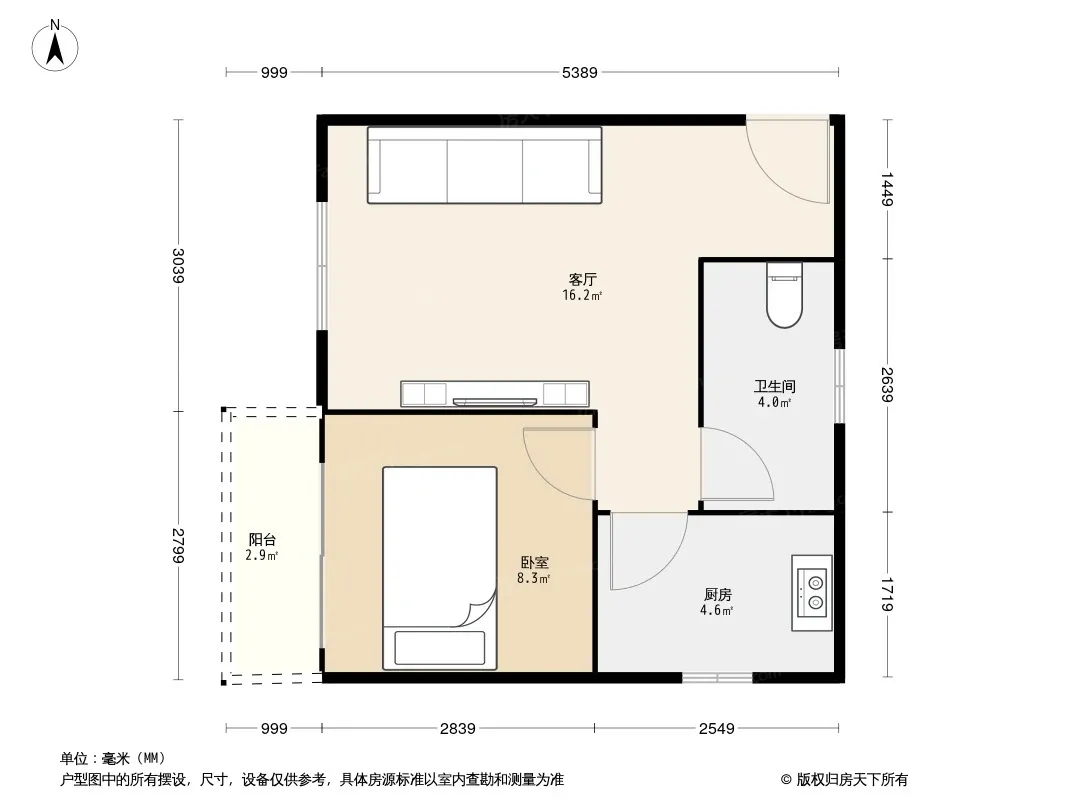 皇经花园B区 1室1厅 南