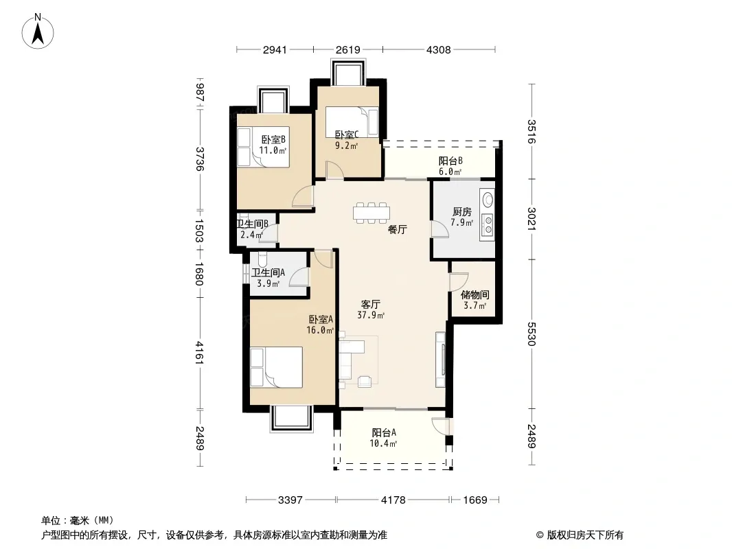 户型齐全,主打明卫,双阳台,主卧朝南三居
