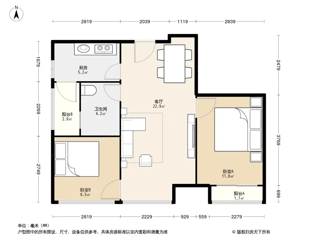 户型齐全,主打户型方正,客厅朝南二居