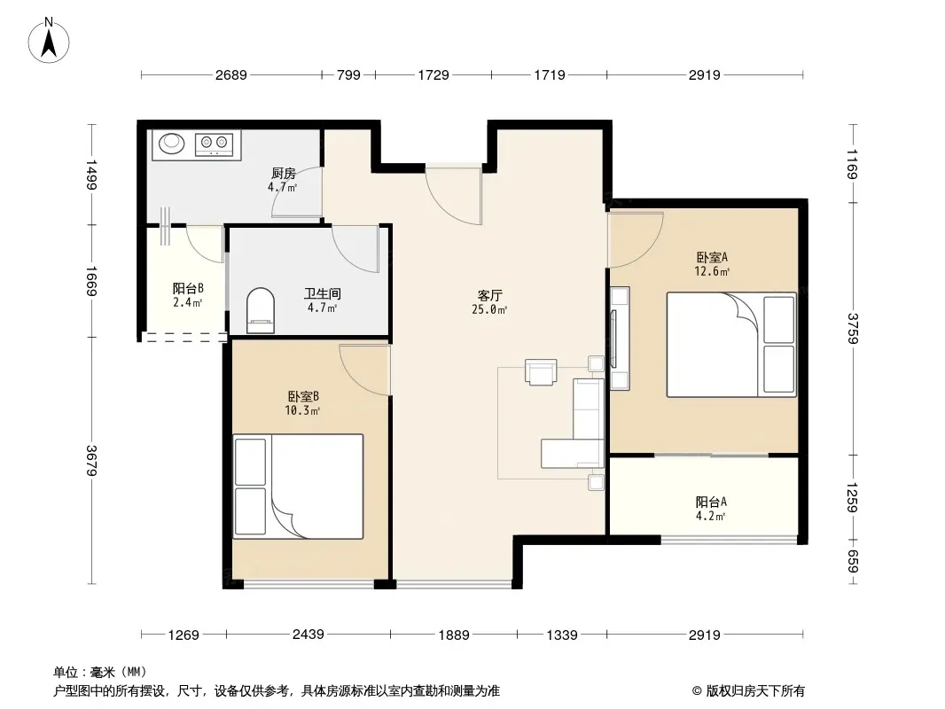 户型齐全,主打户型方正,客厅朝南二居