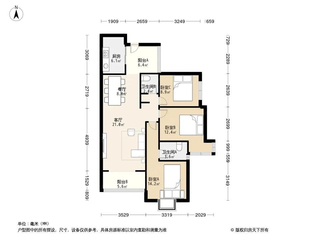 户型齐全,主打户型方正,明厨二居