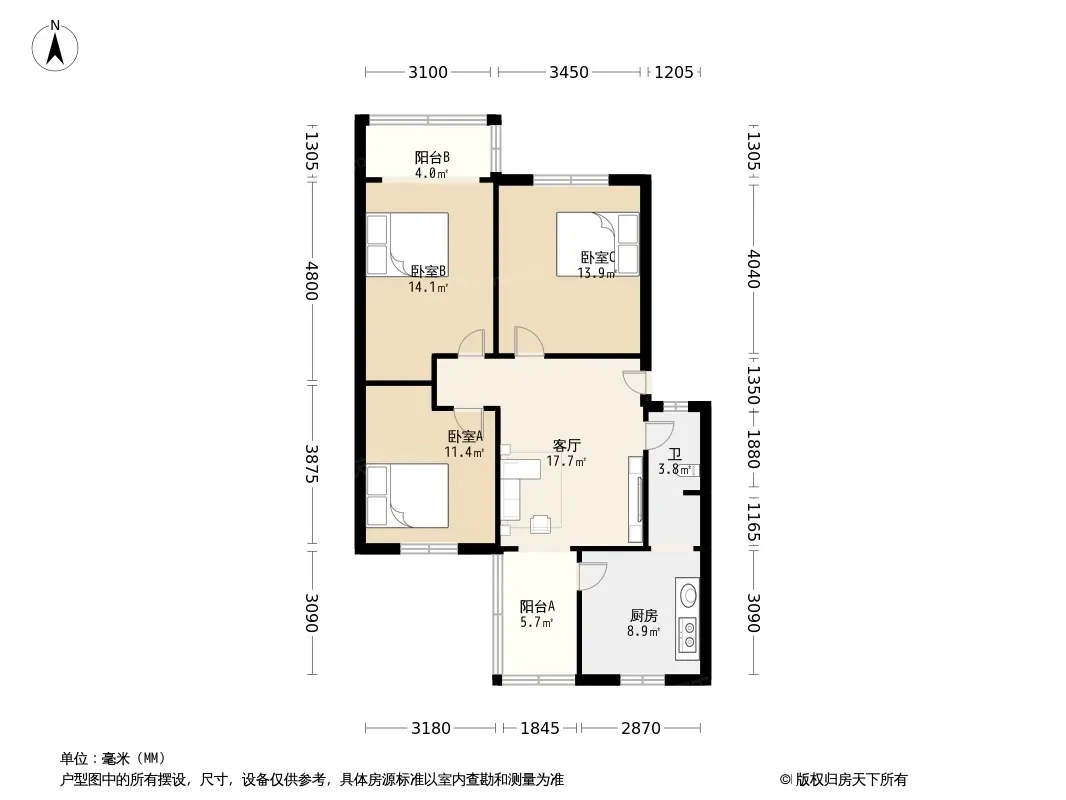 星河路社区 3室1厅 南