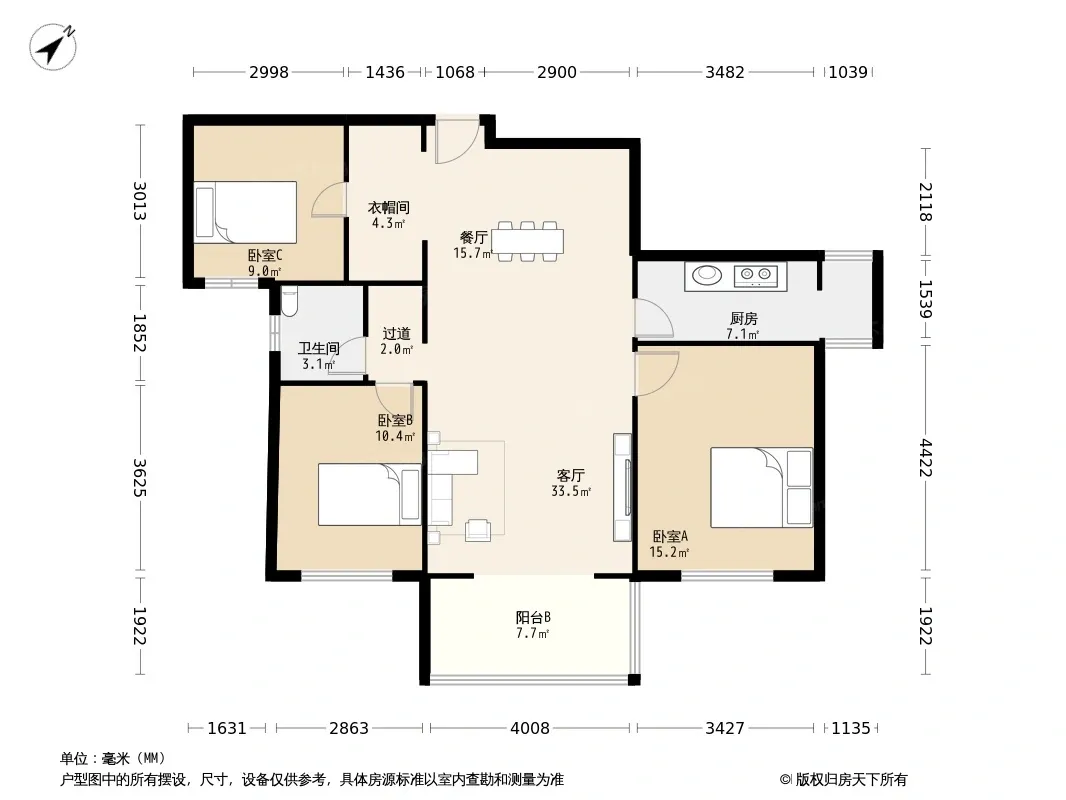 户型齐全,主打明厨,明卫,独立衣帽间三居
