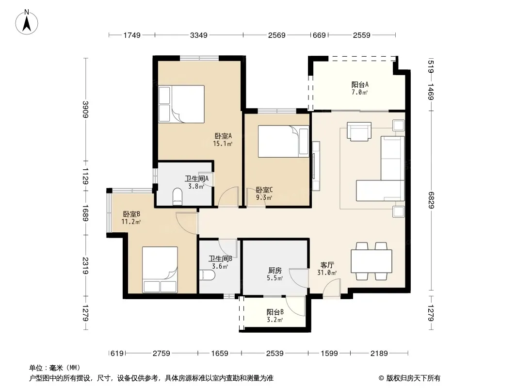 润扬北城1号 3室2厅 北