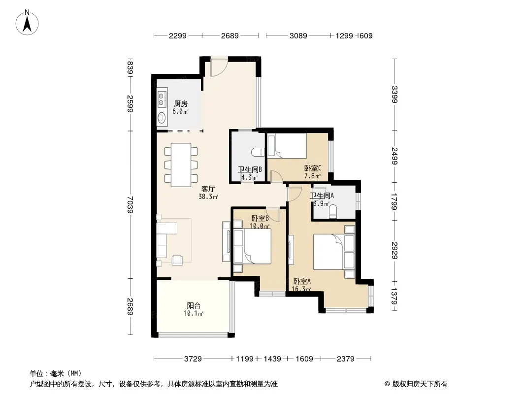户型齐全,主打明厨,明卫,双阳台三居
