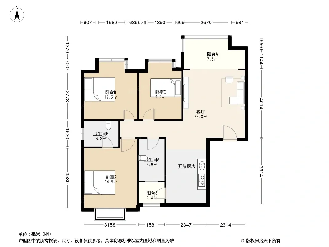 魅力阳光 3室2厅 东北