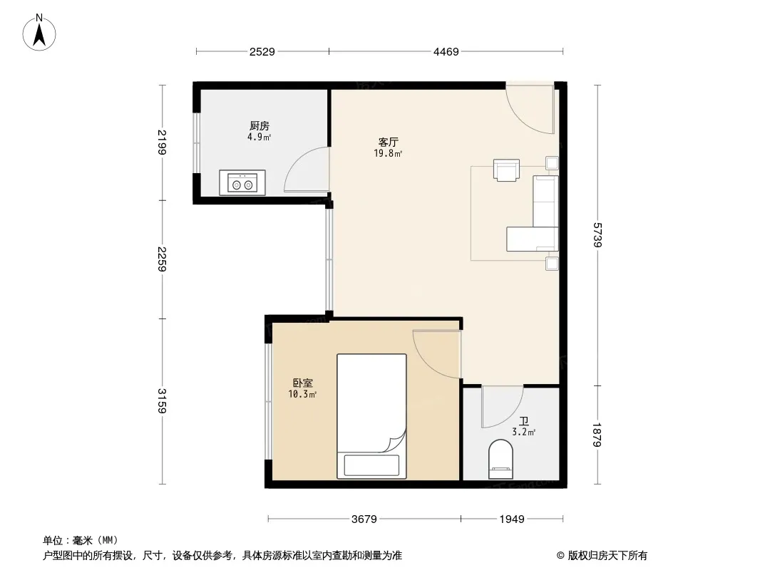 户型齐全,主打明厨,客厅朝南二居