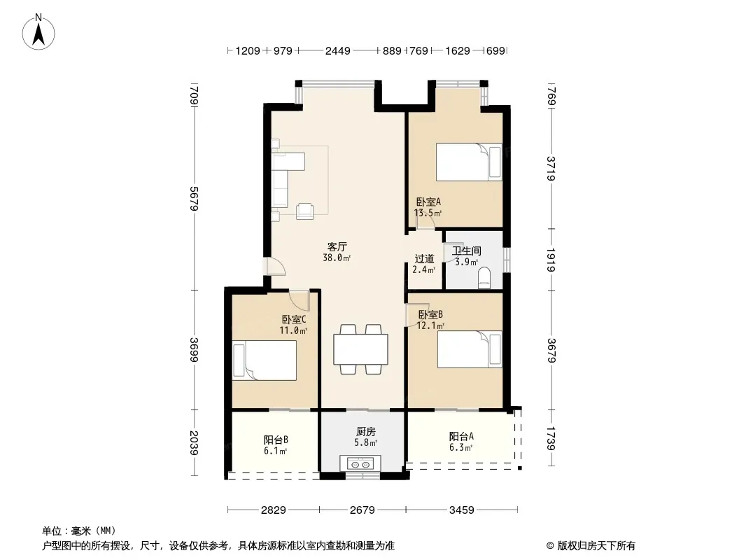 户型齐全,主打客厅朝南三居
