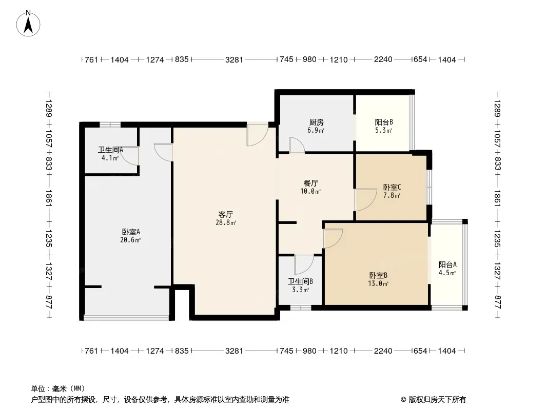 户型齐全,主打客厅朝南三居