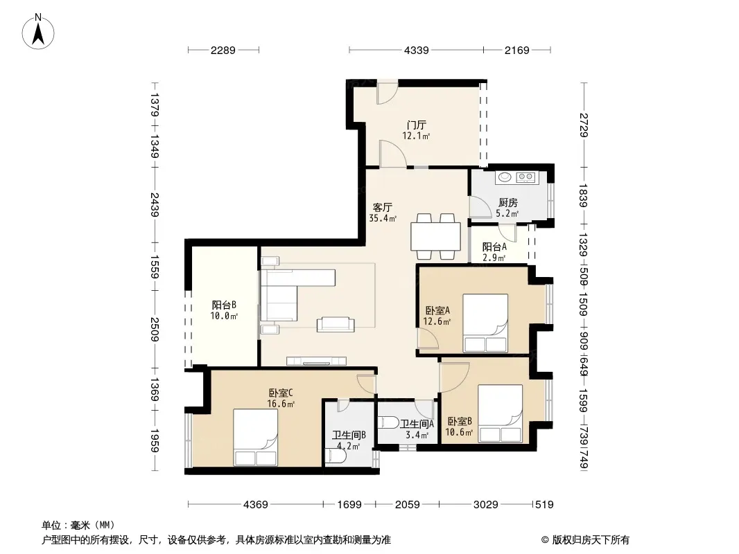 户型齐全,主打户型方正,明厨,明卫,双阳台三居