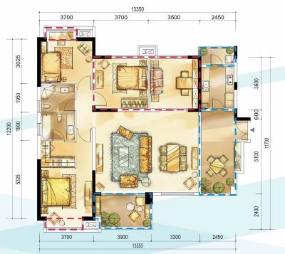 户型齐全,主打户型方正,双阳台三居