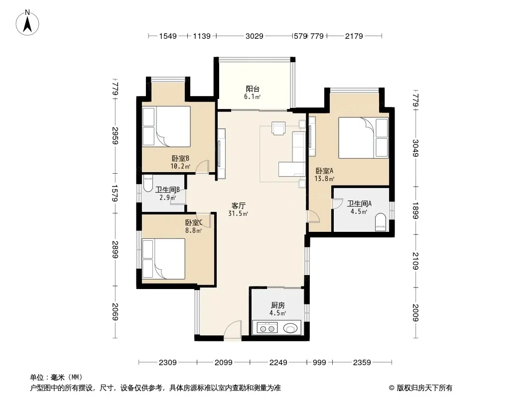 *获取完整户型报告,同时会有免费语音讲解服务