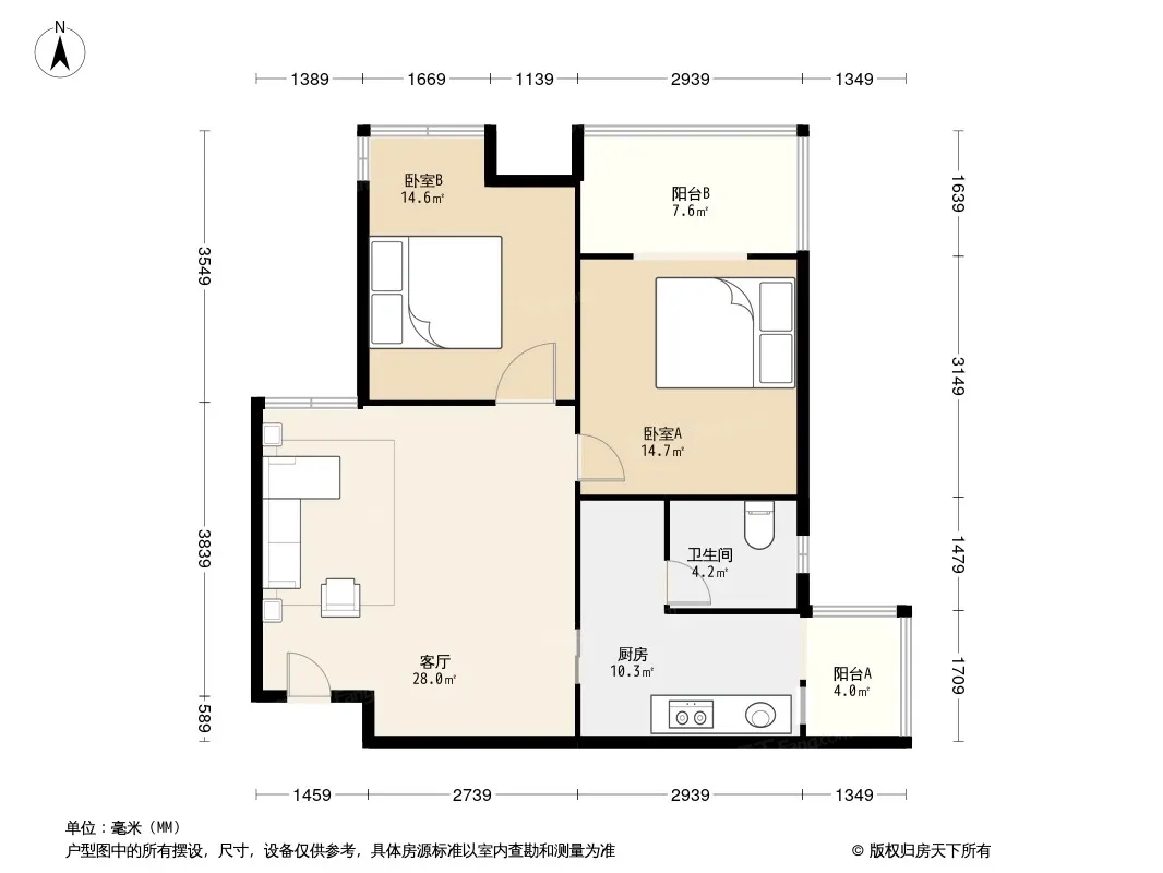 户型齐全,主打客厅朝南二居