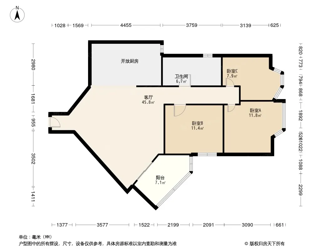 户型齐全,主打独立衣帽间,明厨,主卧朝南三居