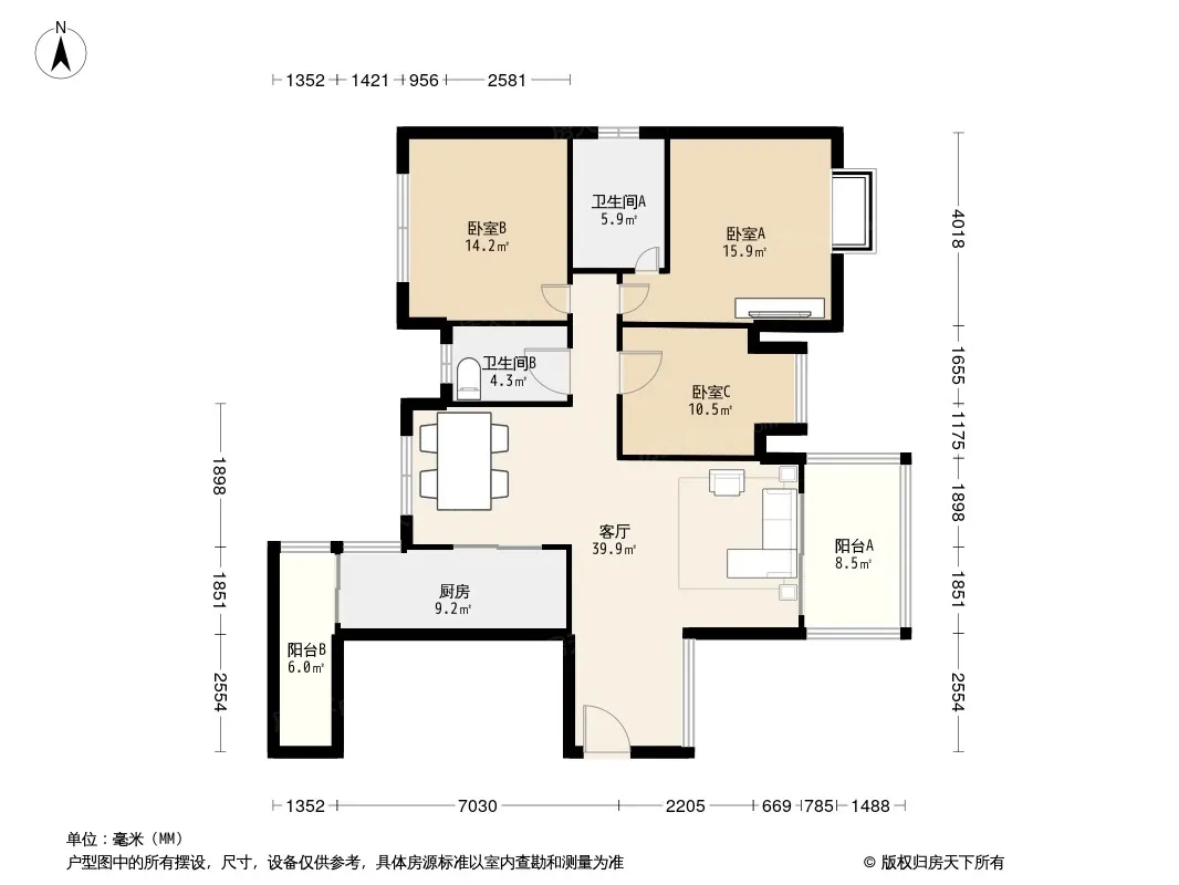 户型齐全,主打户型方正,明卫,客厅朝南三居
