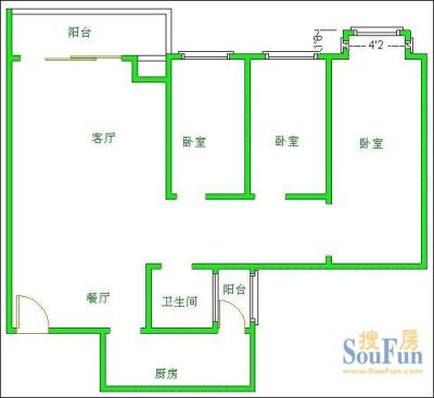 月光诚品 3室1厅 东南