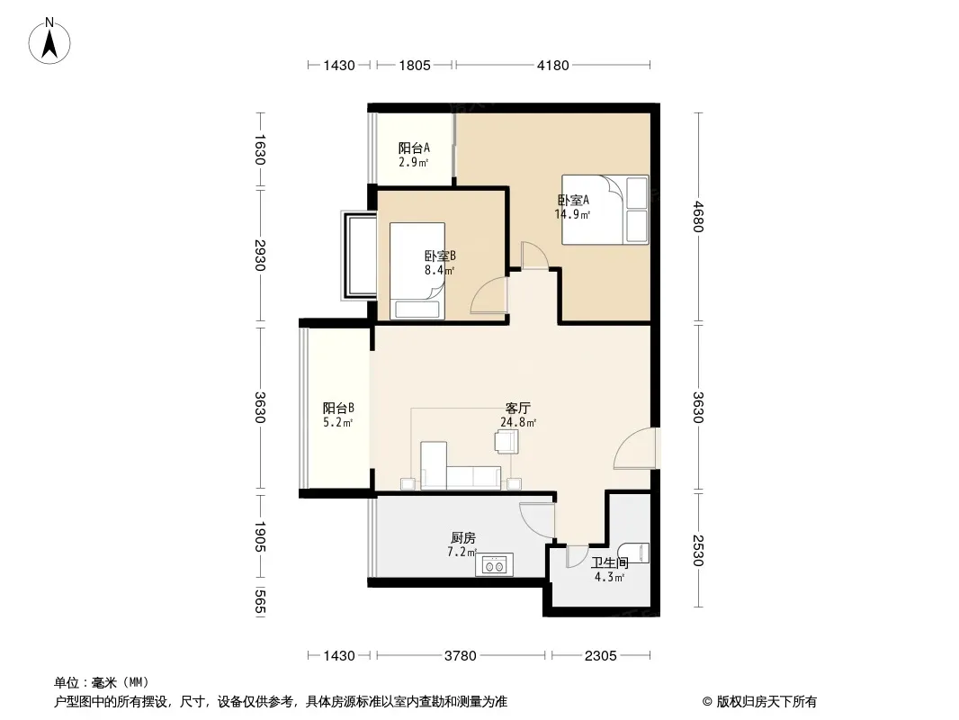 户型齐全,主打户型方正,明卫,客厅朝南,双卧朝南三居