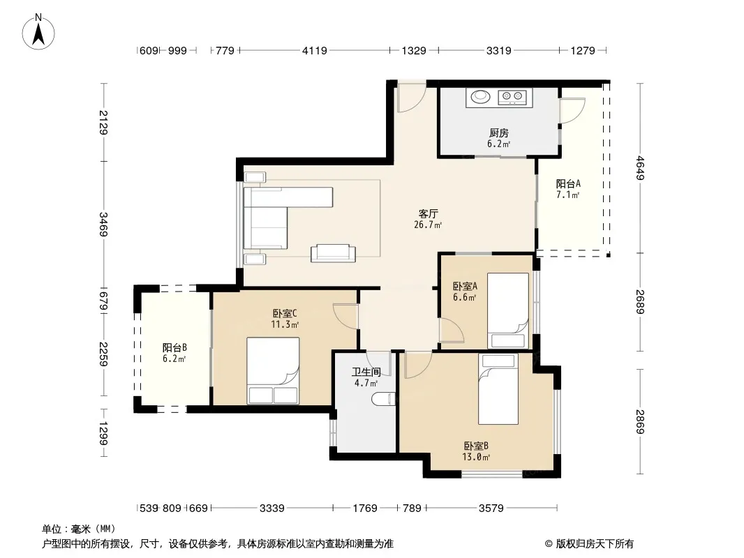 *获取完整户型报告,同时会有免费语音讲解服务
