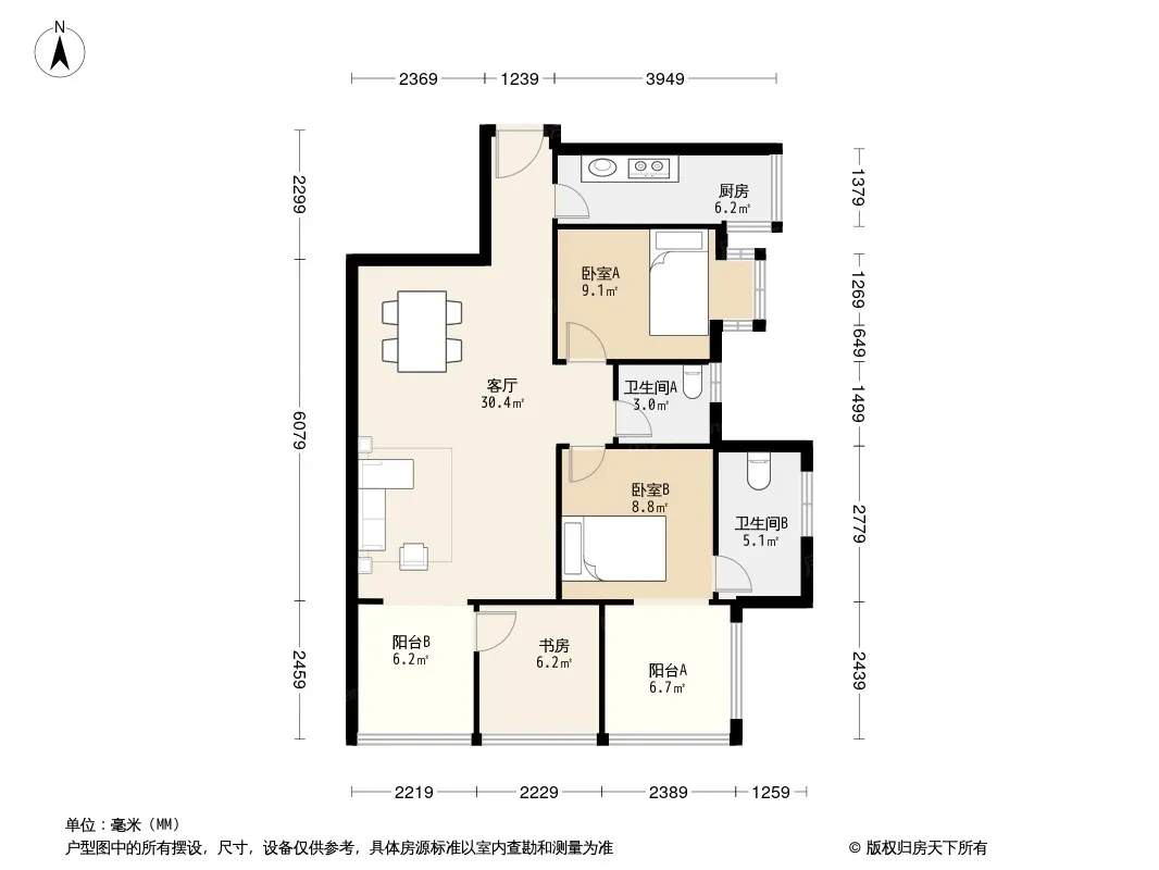 户型齐全,主打户型方正,明卫,客厅朝南三居