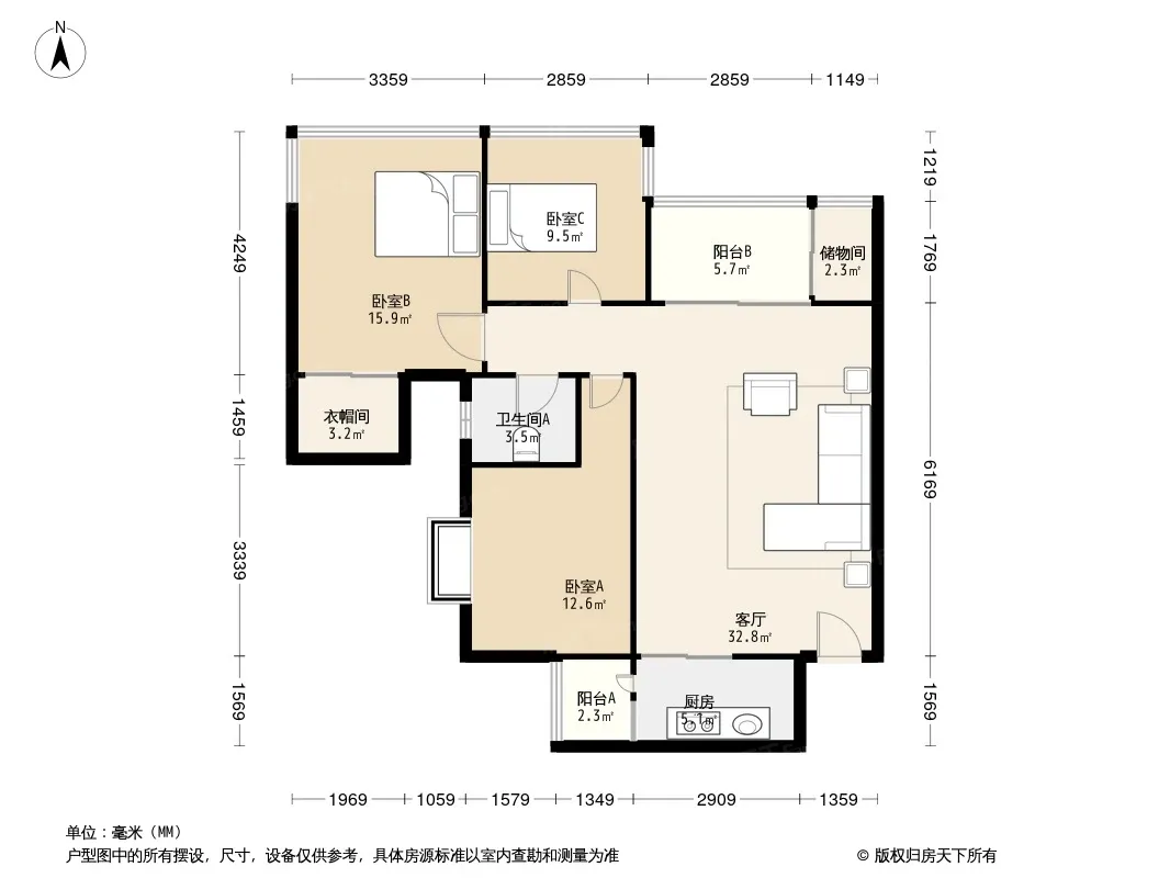 户型齐全,主打户型方正,明卫,客厅朝南三居