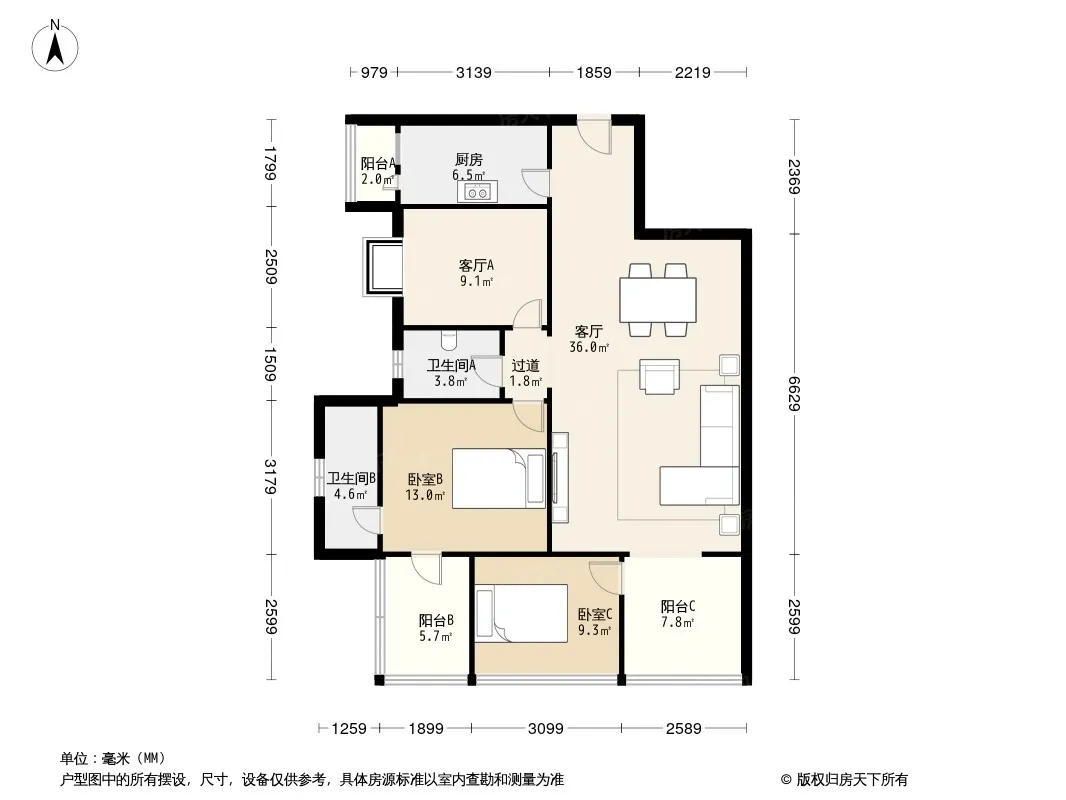 户型齐全,主打户型方正,明卫,客厅朝南三居