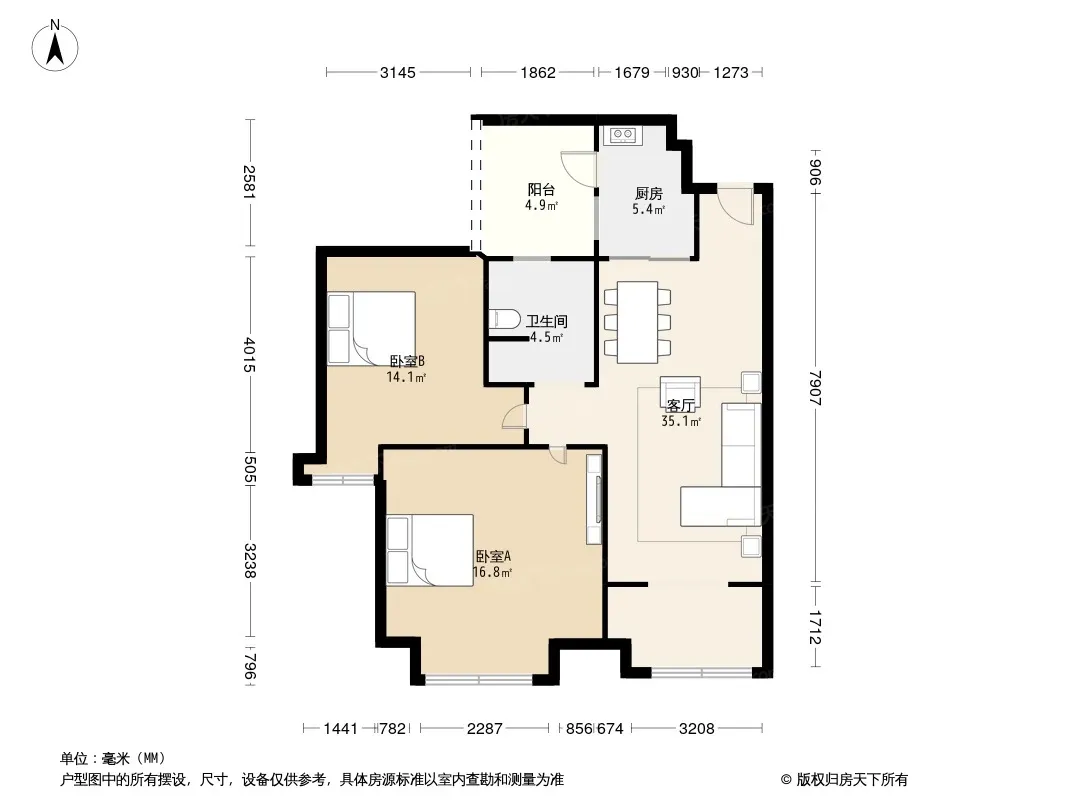 户型齐全,主打客厅朝南二居
