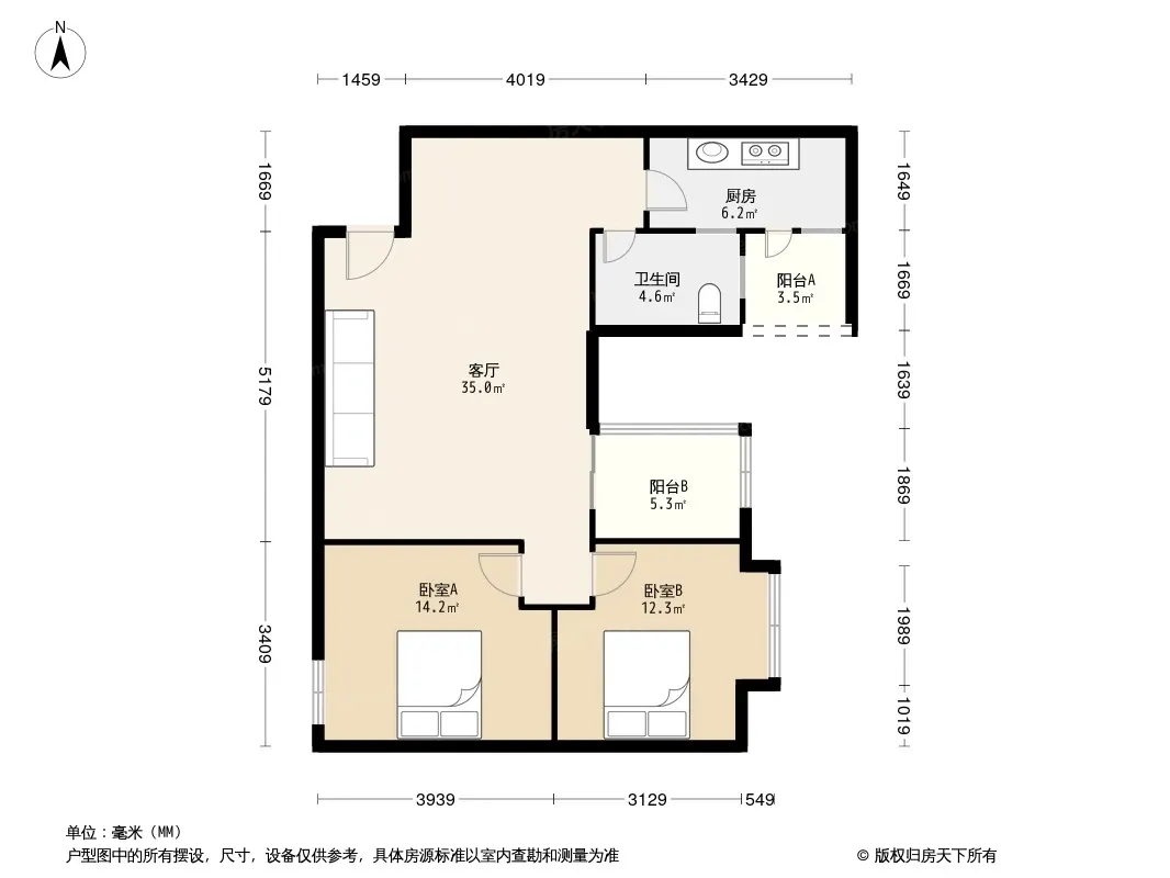 户型齐全,主打户型方正,客厅朝南,双阳台二居