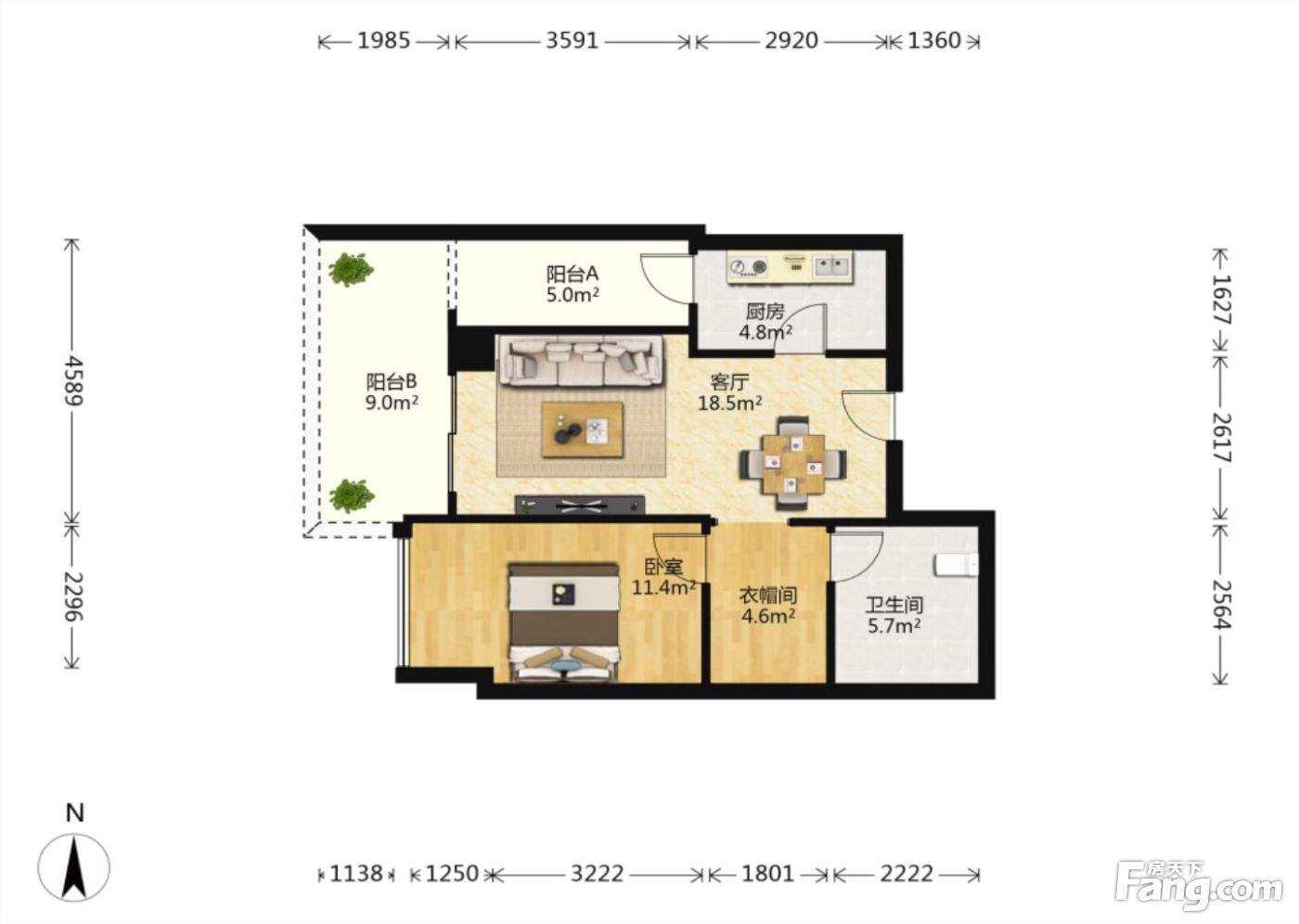 户型齐全,主打独立衣帽间,双阳台一居