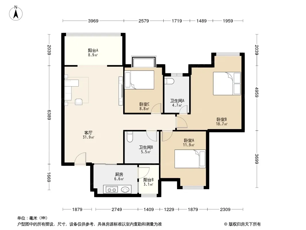 户型齐全,主打户型方正,明卫三居