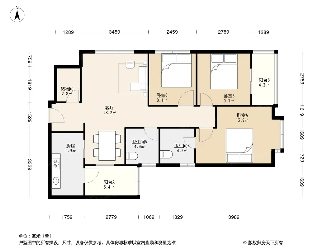 户型齐全,主打明卫,客厅朝南,双阳台三居