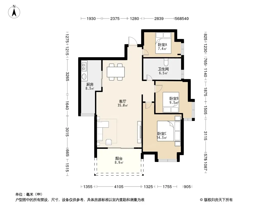 户型齐全,主打户型方正,明卫,客厅朝南,双卧朝南,主卧朝南三居