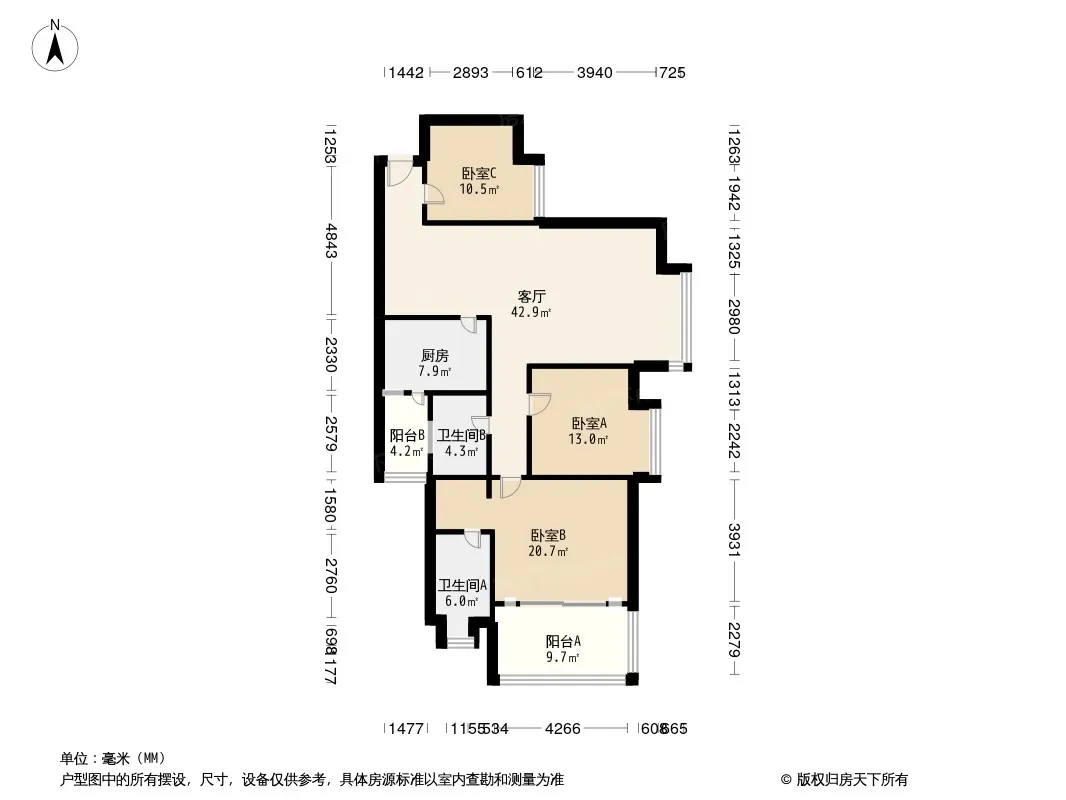 户型齐全,主打户型方正,明卫,客厅朝南,双卧朝南,主卧朝南三居