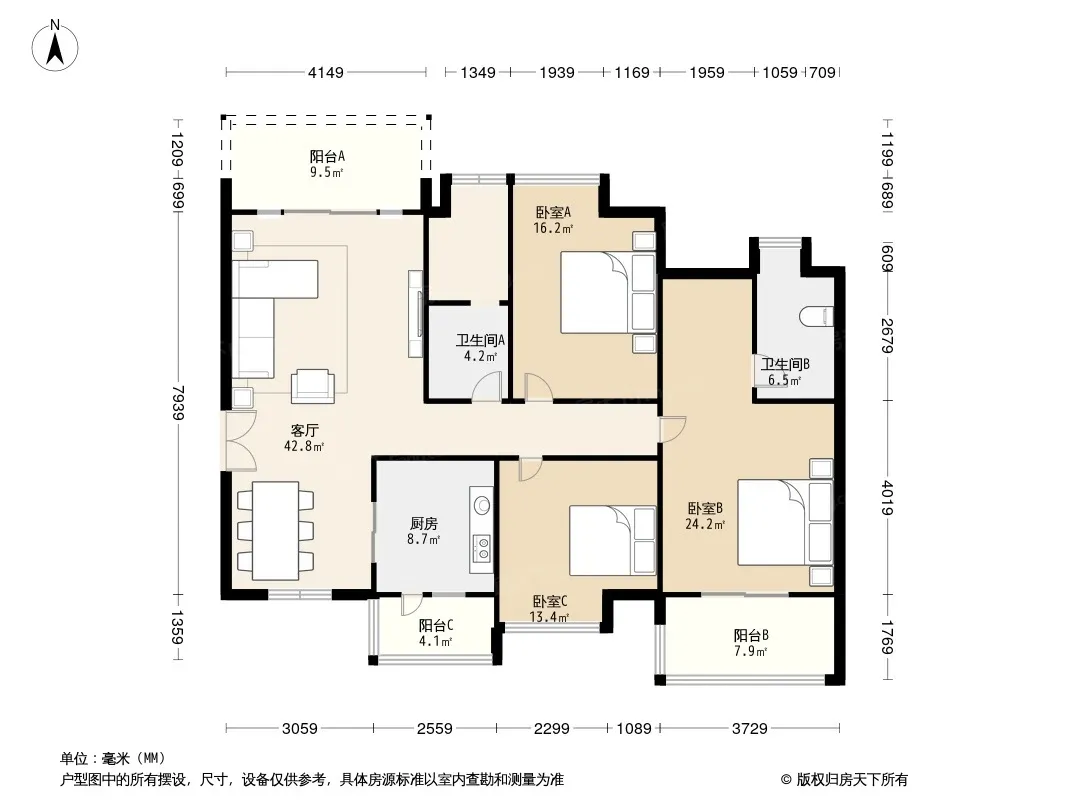 户型齐全,主打户型方正,明卫,客厅朝南,双卧朝南,主卧朝南三居