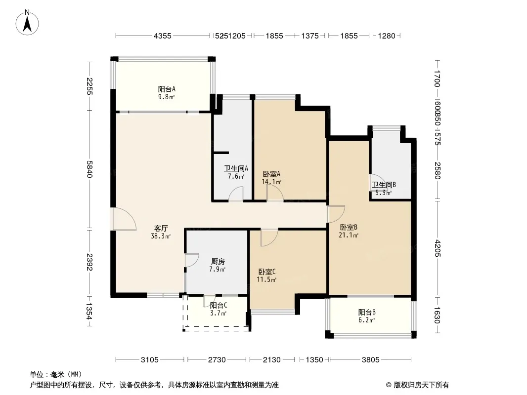 户型齐全,主打户型方正,明卫,客厅朝南,双卧朝南,主卧朝南三居