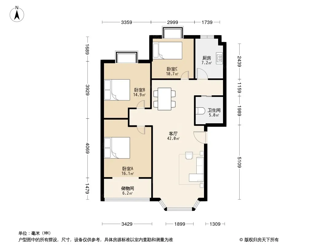 户型齐全,主打客厅朝南三居