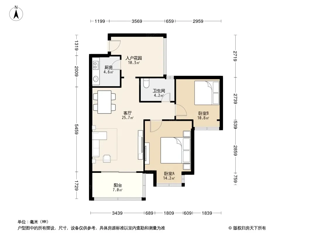 户型齐全,主打主卧朝南二居