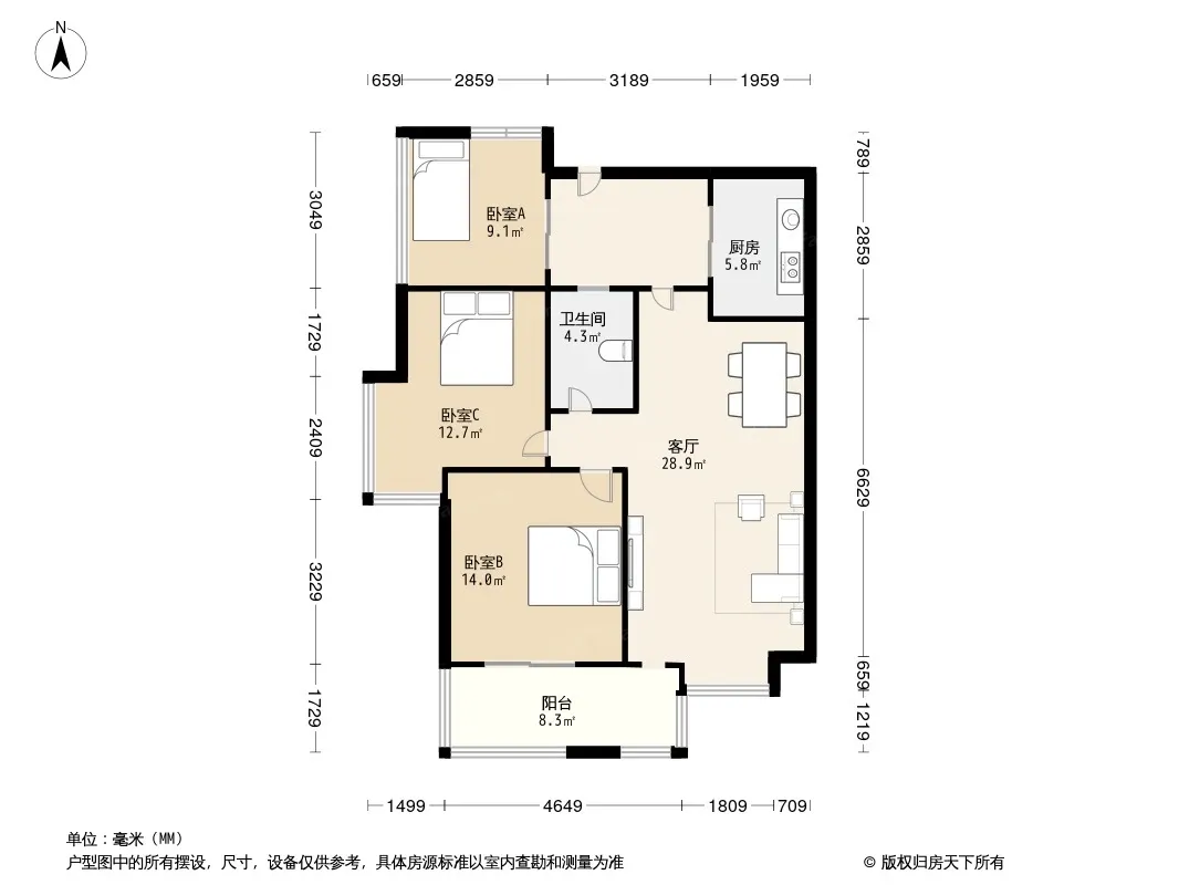 海骏达蜀都1号凯悦二期 3室1厅 东南