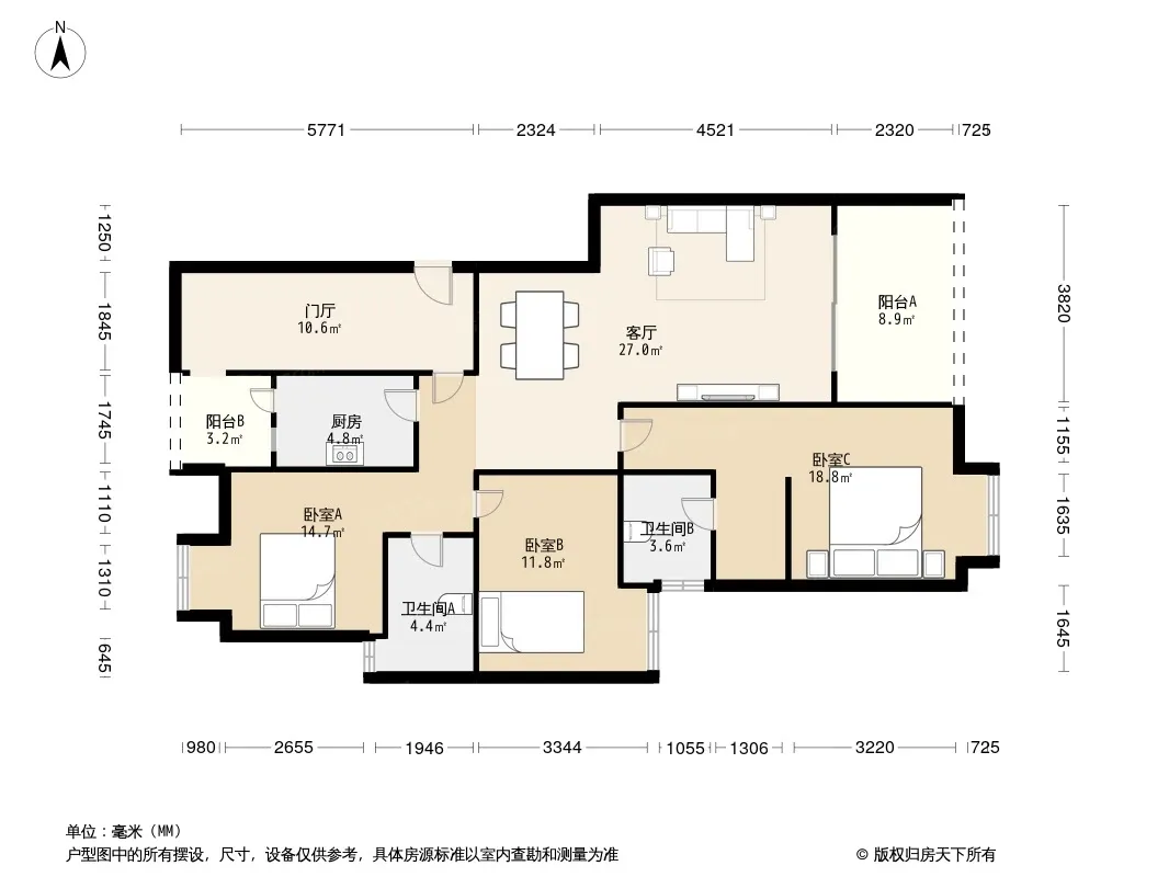 户型齐全,主打户型方正,明卫三居