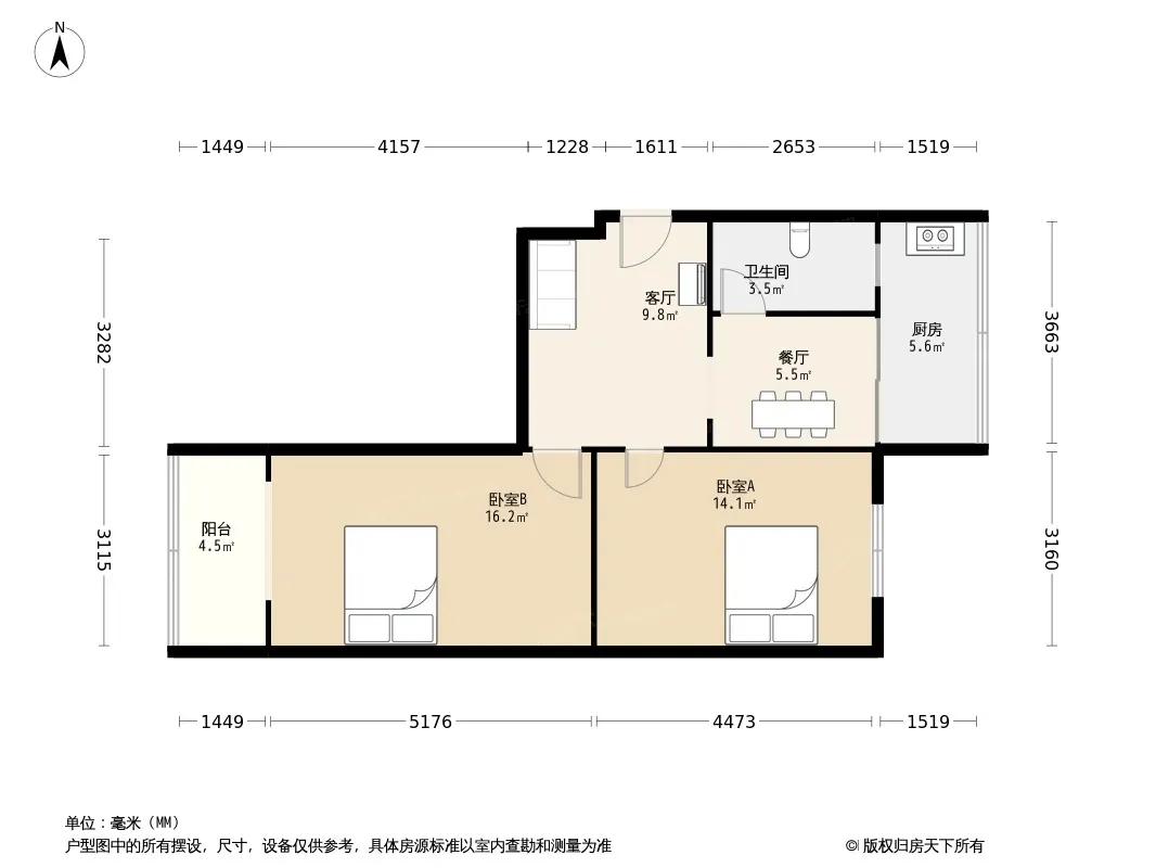 户型齐全,主打户型方正,明厨,主卧朝南二居