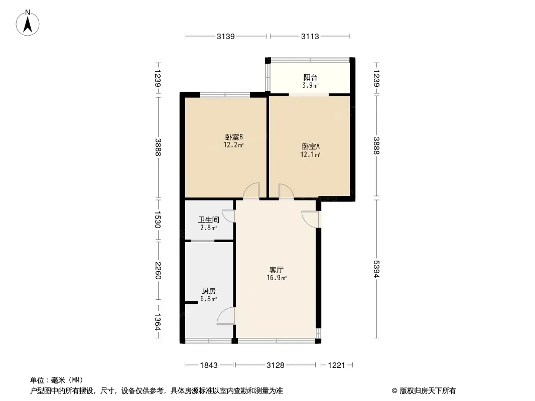 户型齐全,主打明卫,客厅朝南二居