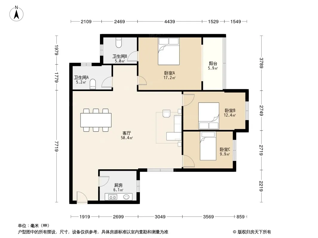 户型齐全,主打户型方正,明卫,明厨,客厅朝南,双卧朝南三居
