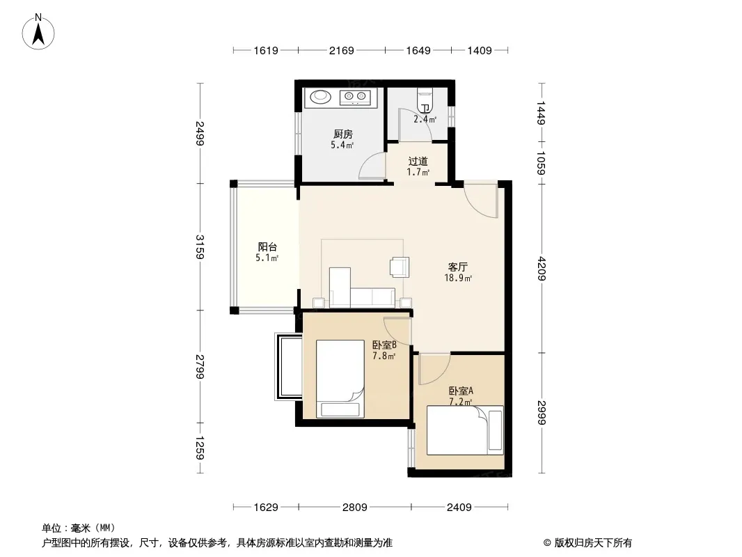 户型齐全,主打明卫,客厅朝南,双阳台二居