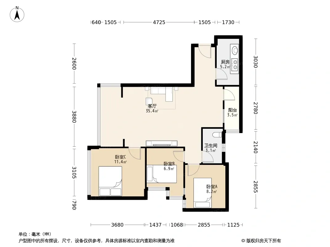 *获取完整户型报告,同时会有免费语音讲解服务