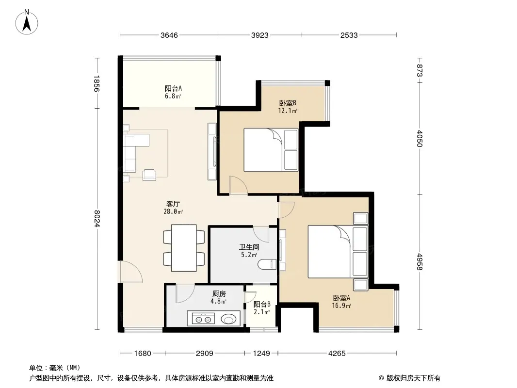户型齐全,主打户型方正,明卫,客厅朝南,主卧朝南三居