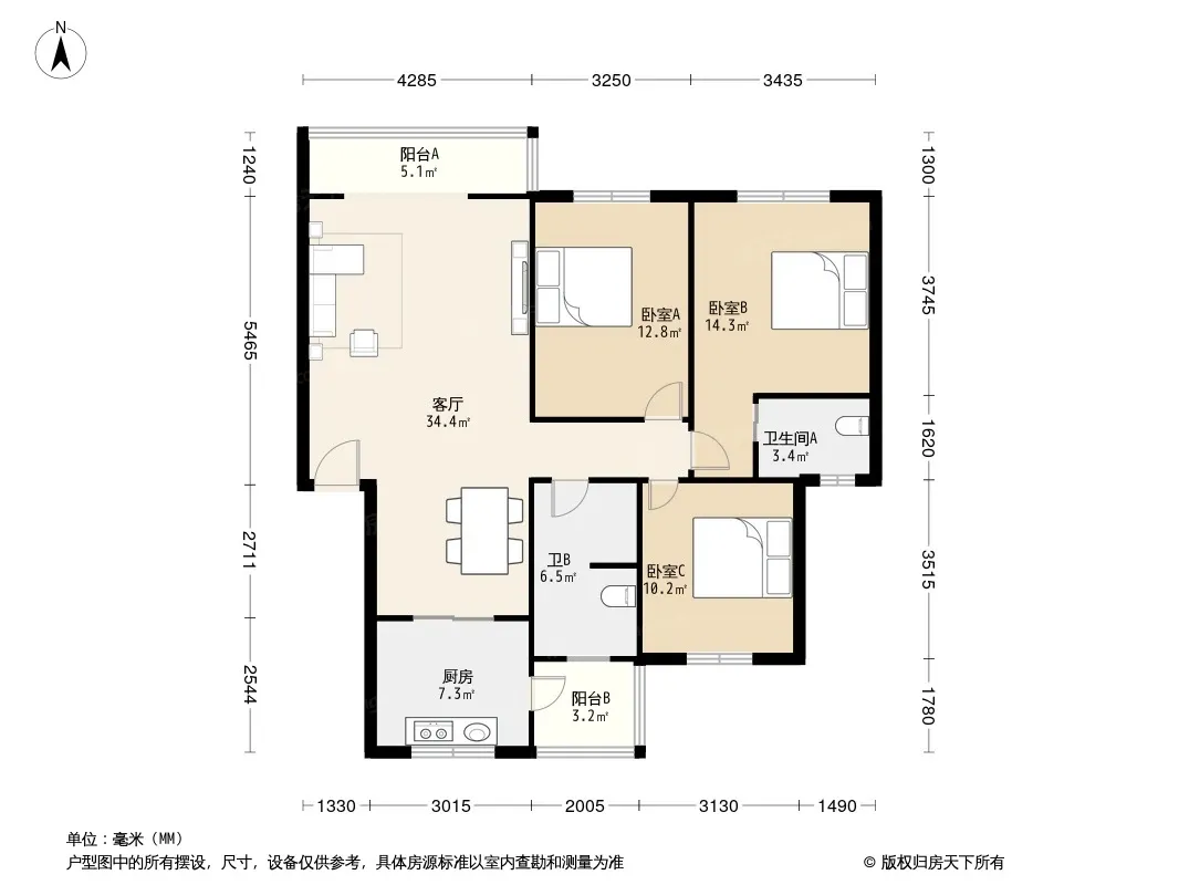 户型齐全,主打户型方正,明卫三居