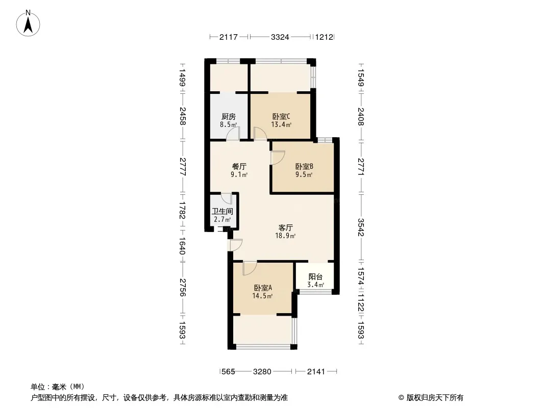 榕影苑 3室2厅 南