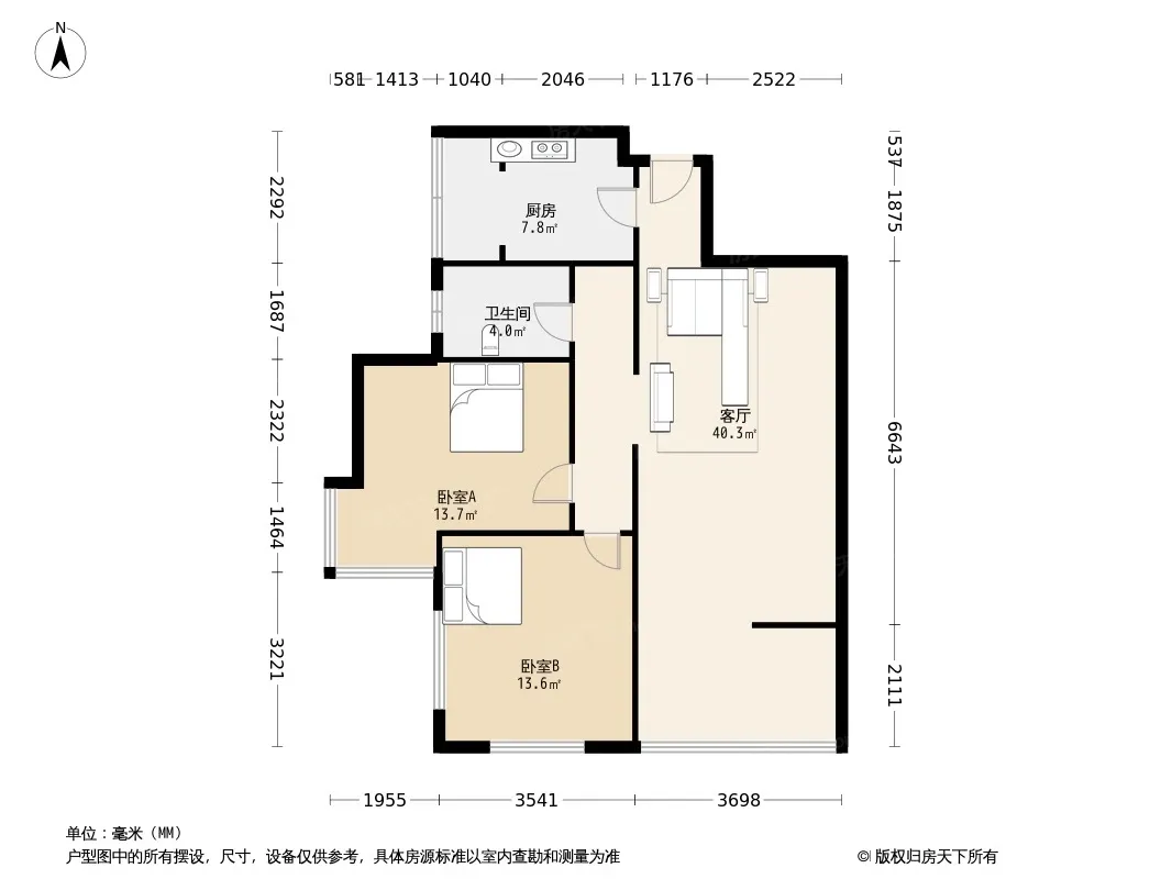户型齐全,主打明厨,明卫,客厅朝南,全明格局二居