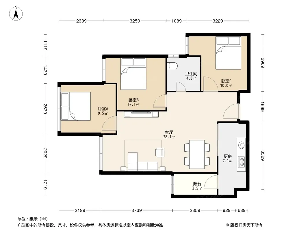 合能四季城二期 3室1厅 东北