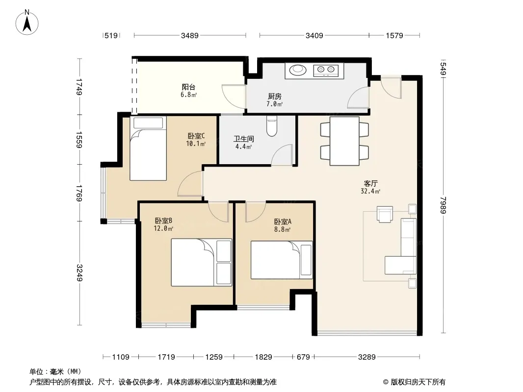 合能四季城二期 3室1厅 东南